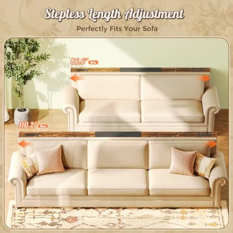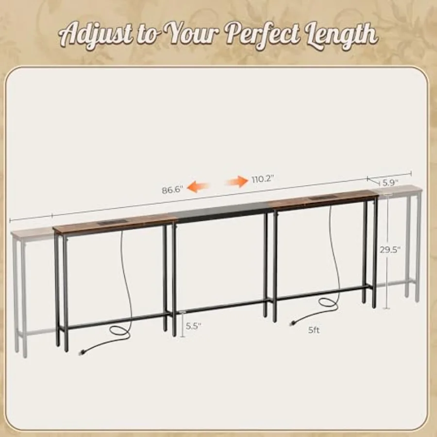 Make your living space more functional with this adjustable narrow sofa table with built-in power outlets. Designed to fit behind couches, this long console table adds convenience without taking up extra space. The adjustable length expands to fit different sofa sizes and room layouts. Built-in power outlets and USB-C ports allow easy charging for phones, tablets, and devices. Perfect for keeping electronics powered right from your seating area. The slim profile makes it ideal for tight spaces and small living rooms. Use it behind a couch, in an entryway, or along a wall for added versatility. The spacious top provides room for lamps, décor, and daily essentials. Durable construction ensures stability even at extended length. The modern design blends seamlessly with various home décor styles. Keep cords organized and devices within reach at all times. Great for apartments, living rooms, and open-concept spaces. The multifunction design combines style, storage, and charging convenience. Customers love the adjustable length and built-in power features. Upgrade your home with this smart adjustable sofa table today.