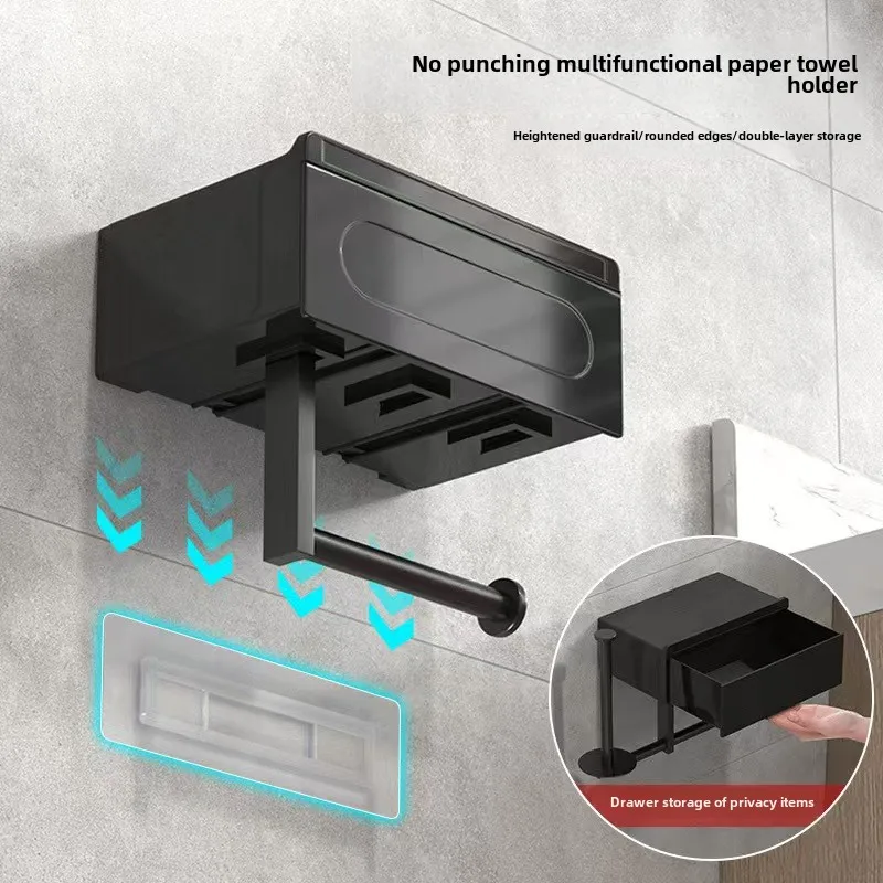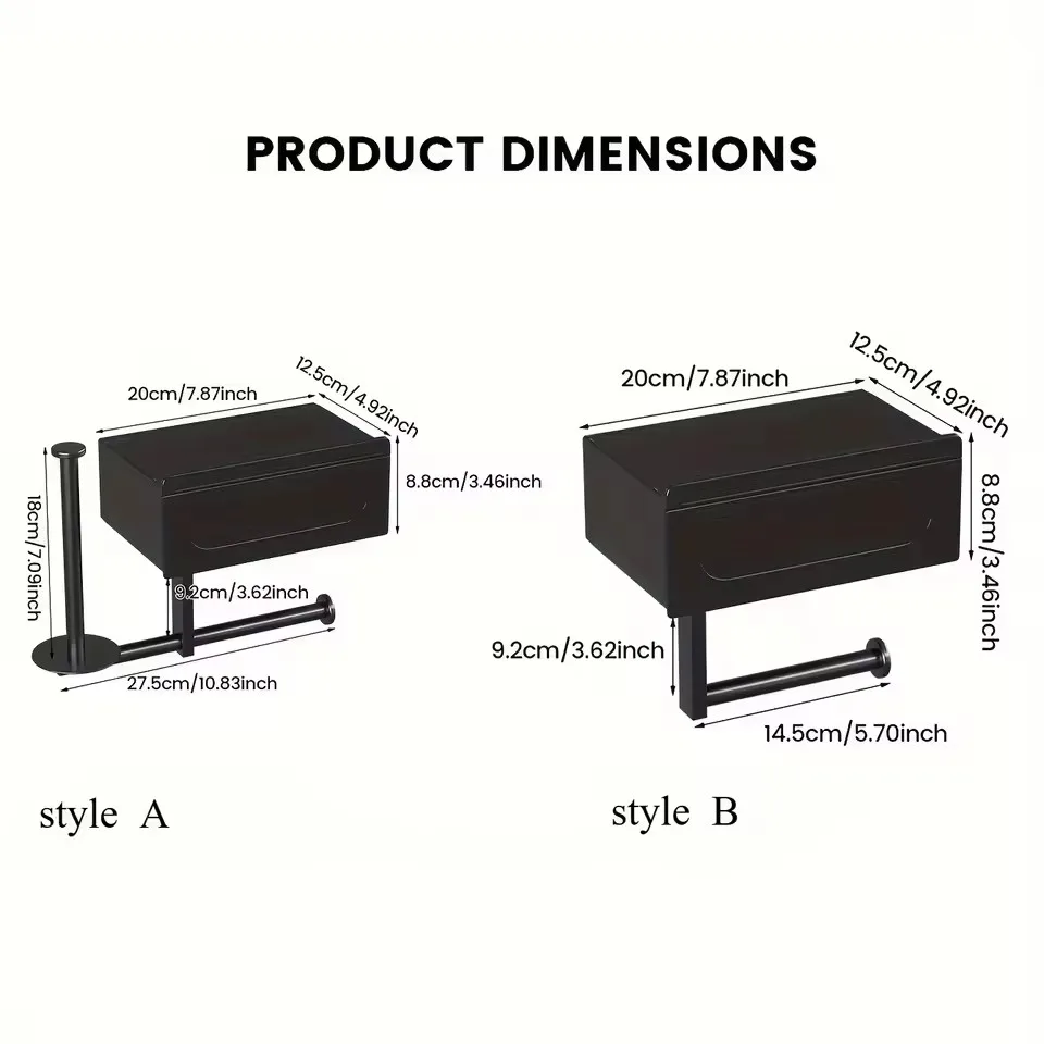 Make your bathroom more organized and modern with this sleek wall-mounted toilet paper holder with shelf. Designed for convenience, it features a built-in top shelf for holding phones, wipes, or small essentials. The no-drill installation allows quick and easy mounting without damaging your walls. Its strong adhesive backing provides secure and reliable support. The durable construction ensures long-lasting everyday use. The sleek black finish adds a modern and minimalist touch to any bathroom décor. Perfect for small bathrooms where space-saving solutions matter most. Keep toilet paper and accessories within easy reach at all times. The top shelf helps reduce clutter and improves functionality. Ideal for apartments, rentals, or quick bathroom upgrades. Water-resistant materials make it suitable for humid environments. The compact design maximizes wall space while keeping things tidy. Easy to install and even easier to use. Customers love the stylish look and practical storage combination. Upgrade your bathroom with this modern wall-mounted toilet paper holder today.